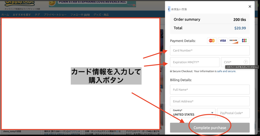 また、決済を専門の外部プロバイダーに委託しているため、決済情報はChaturbate側で管理されません。そのため情報漏洩のリスクがなく安心して使えます。